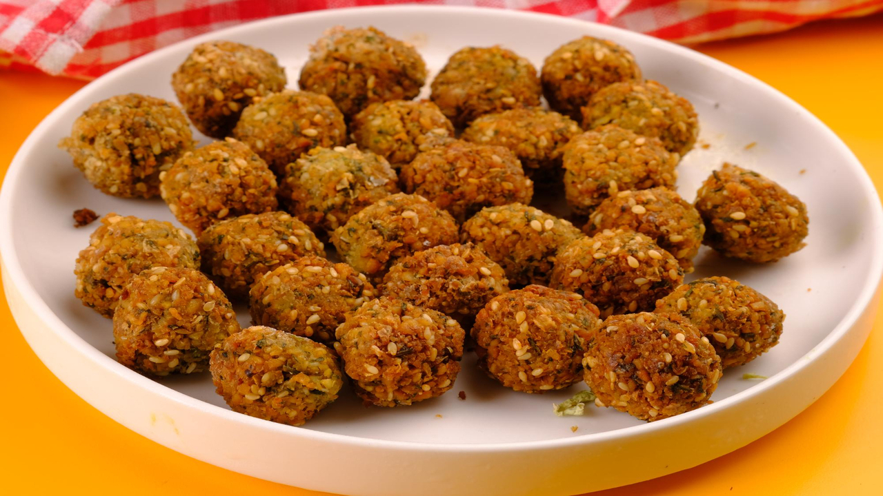 O grão-de-bico tem uma estrutura rica em amido e proteínas vegetais, o que permite formar massas consistentes sem precisar de ovos ou farinhas refinadas. Na culinária do Oriente Médio, ele é usado há séculos em receitas como o falafel e o hummus. Quando cozido e amassado, o grão-de-bico cria uma textura cremosa por dentro e firme por fora, ideal para bolinhos e hambúrgueres vegetais.