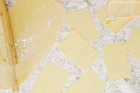 - Caso queira cozinhar, adicione 2 colheres de chá de sal em uma panela de água fervendo e cozinhe por 1 minuto cada folha da sua massa.